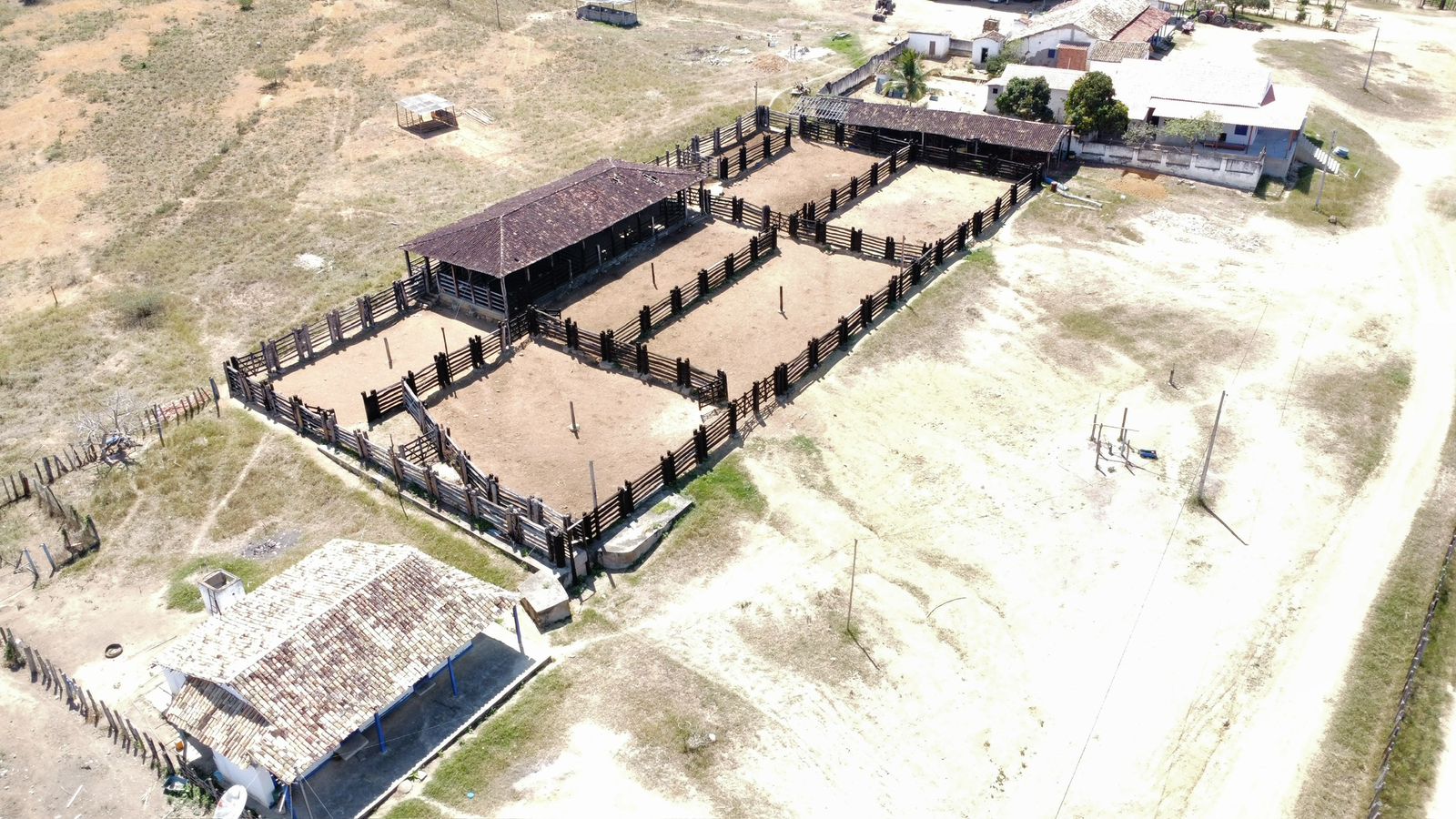 - curral de travesseiro com balanção e brete com balança, com capacidade para 800 a 1000 cabeças com 8 divisões, sendo 2 cobertas.