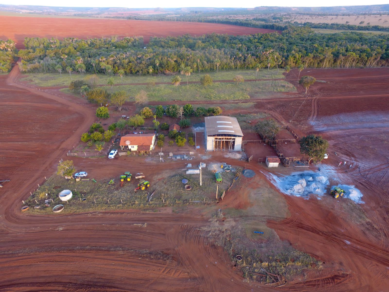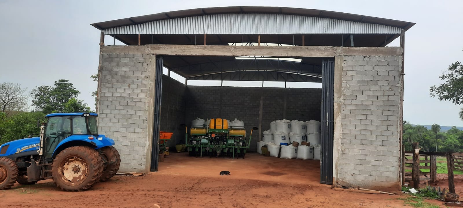 Casa, curral e um barracão para guarda de máquinas, equipamentos e insumos, com oficina.
