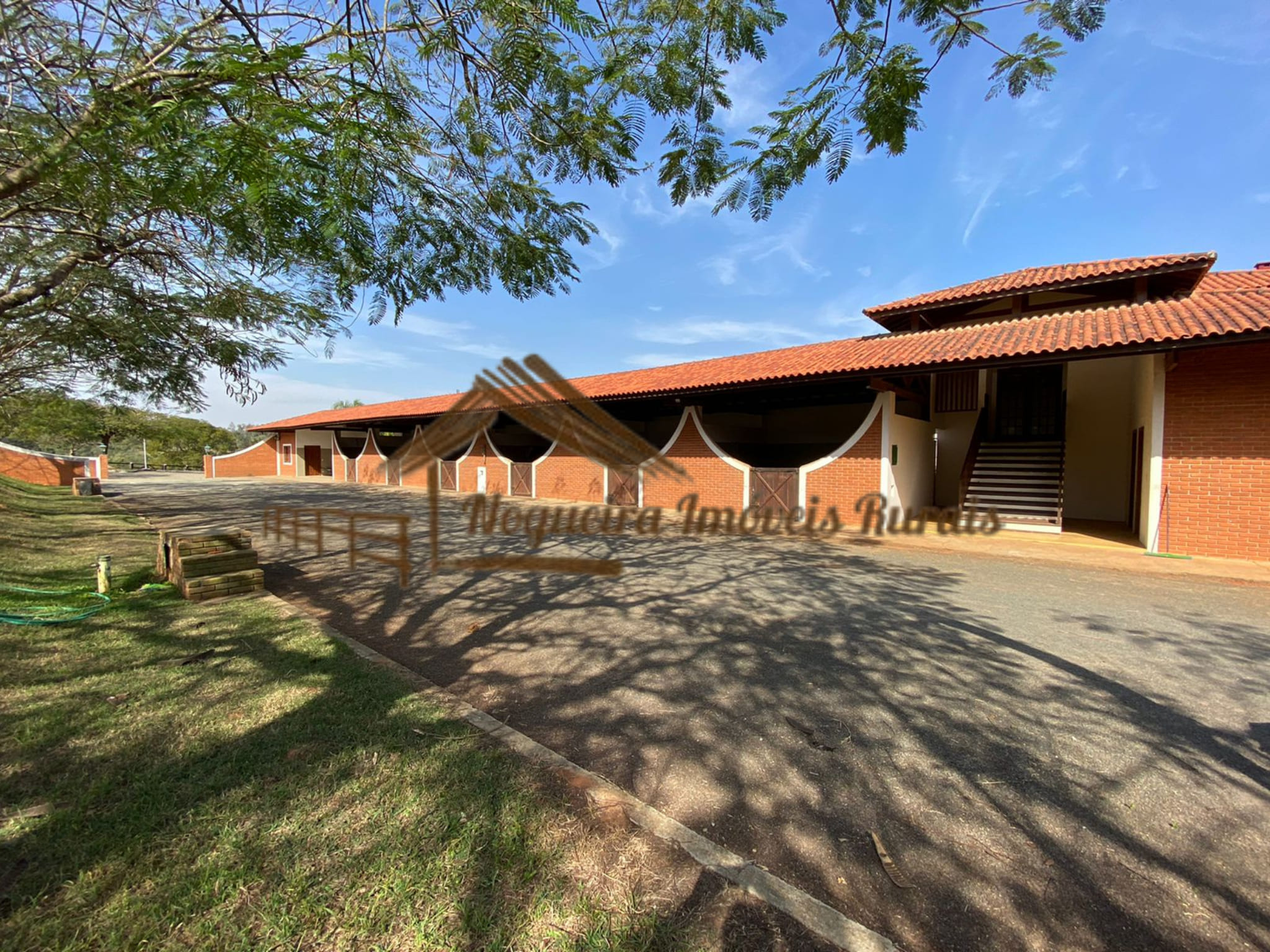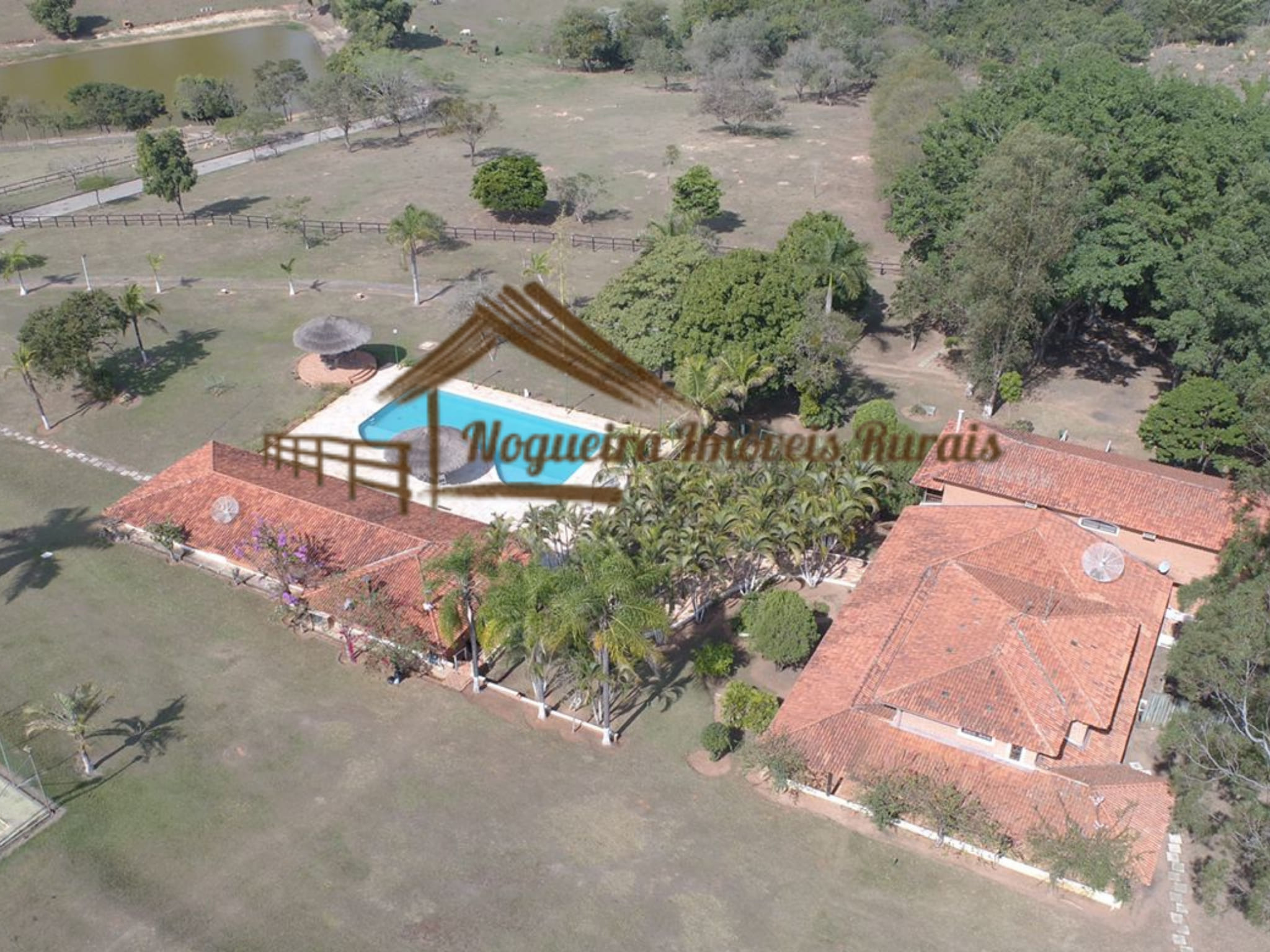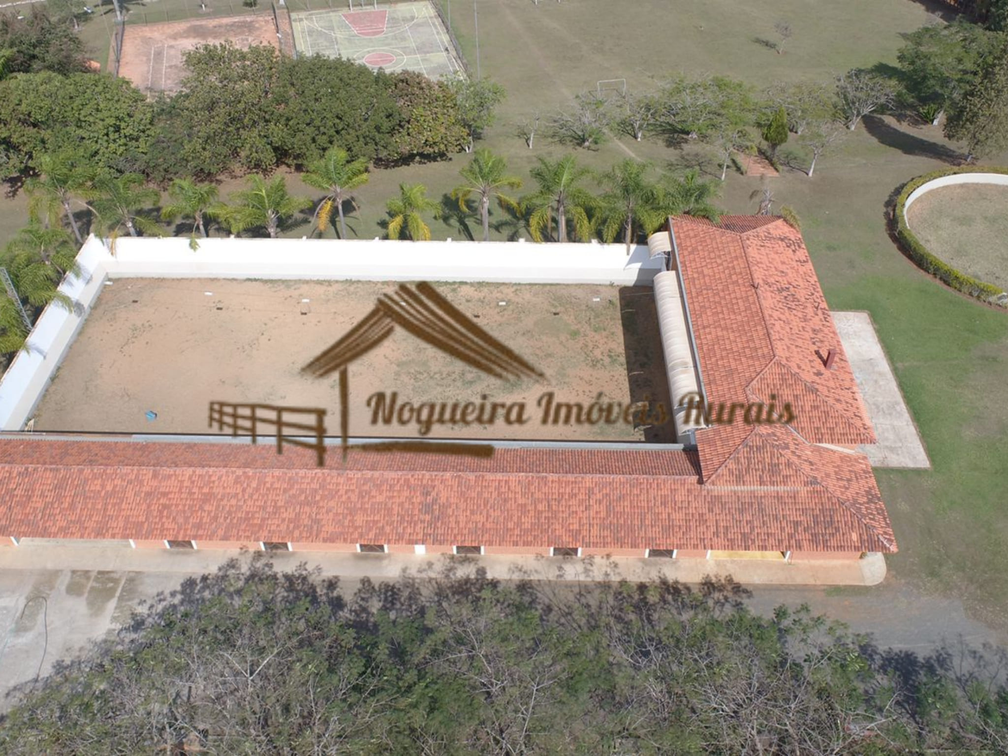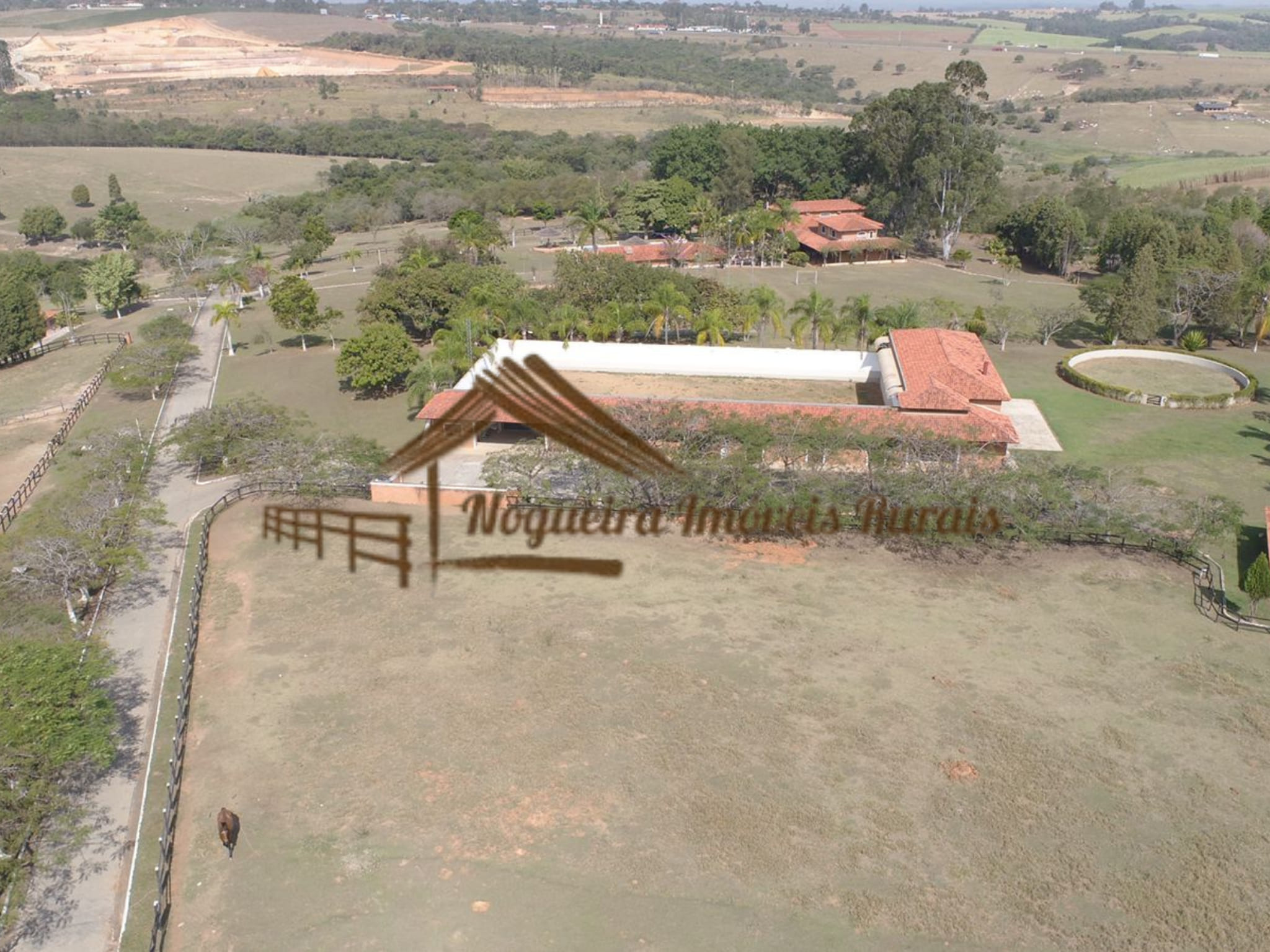 O imóvel rural possui casa sede, baias para cavalos, barracão, curral, casas para funcionários e quadra de tênis.