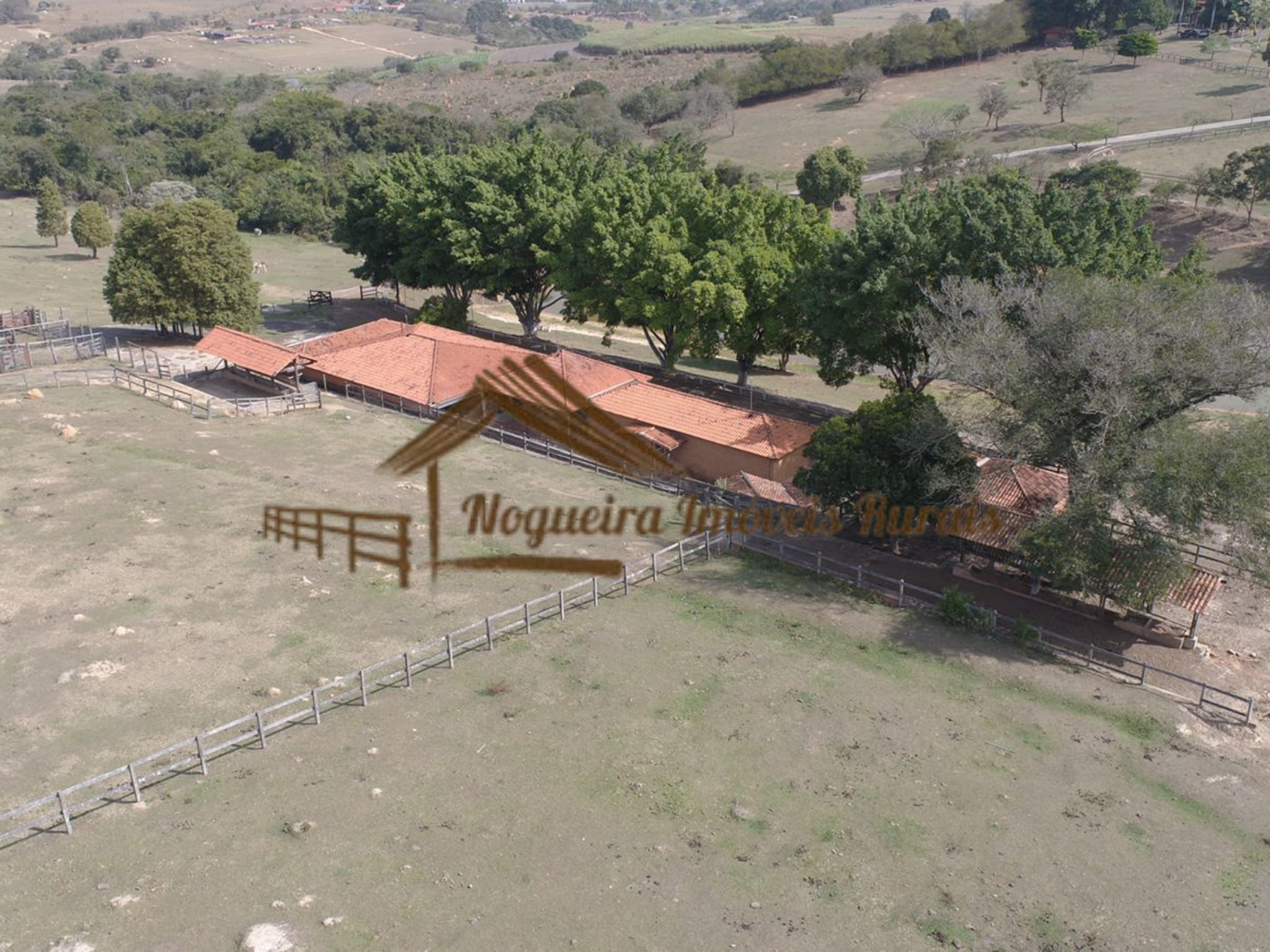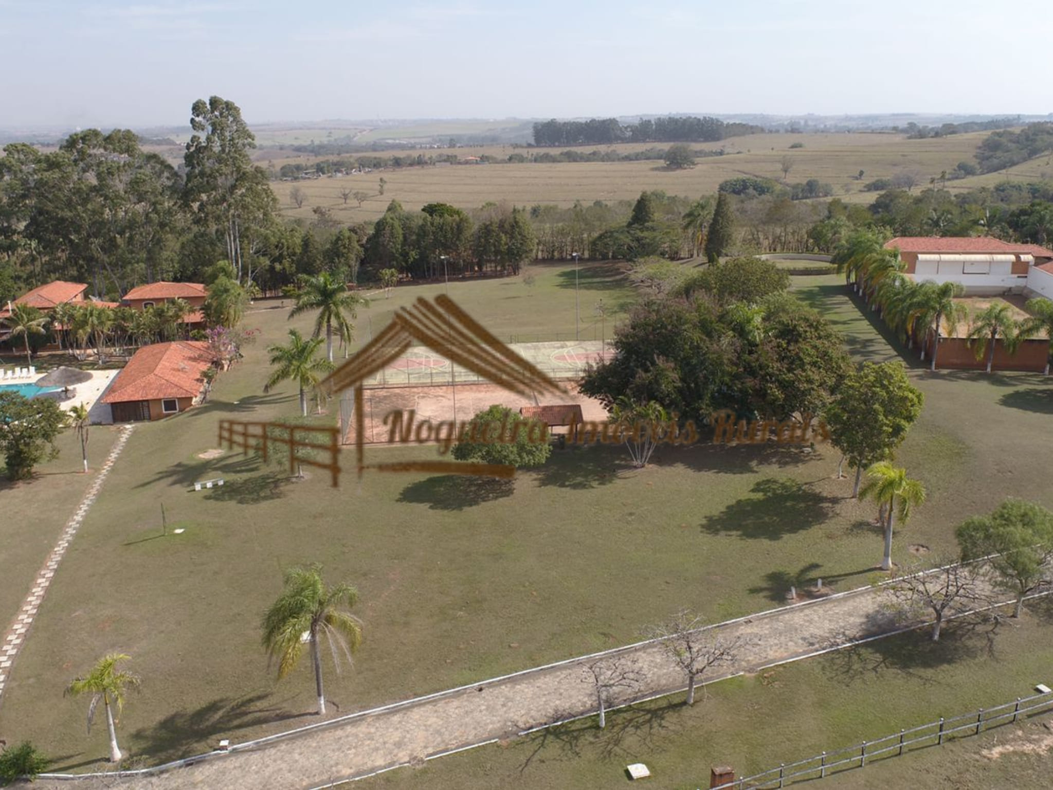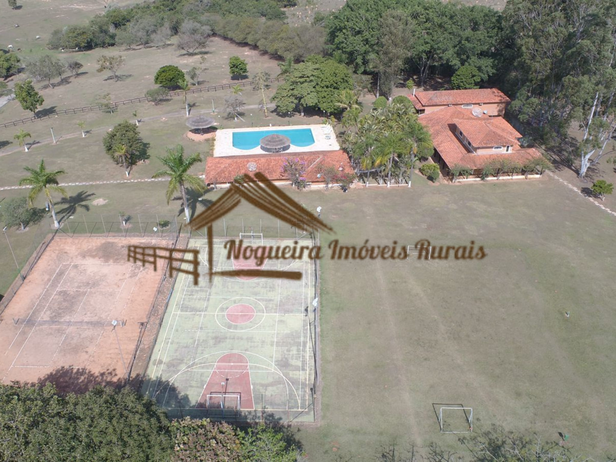 O imóvel rural possui casa sede, baias para cavalos, barracão, curral, casas para funcionários e quadra de tênis.