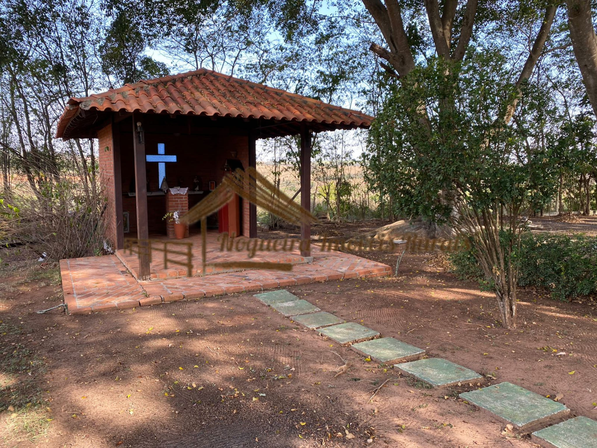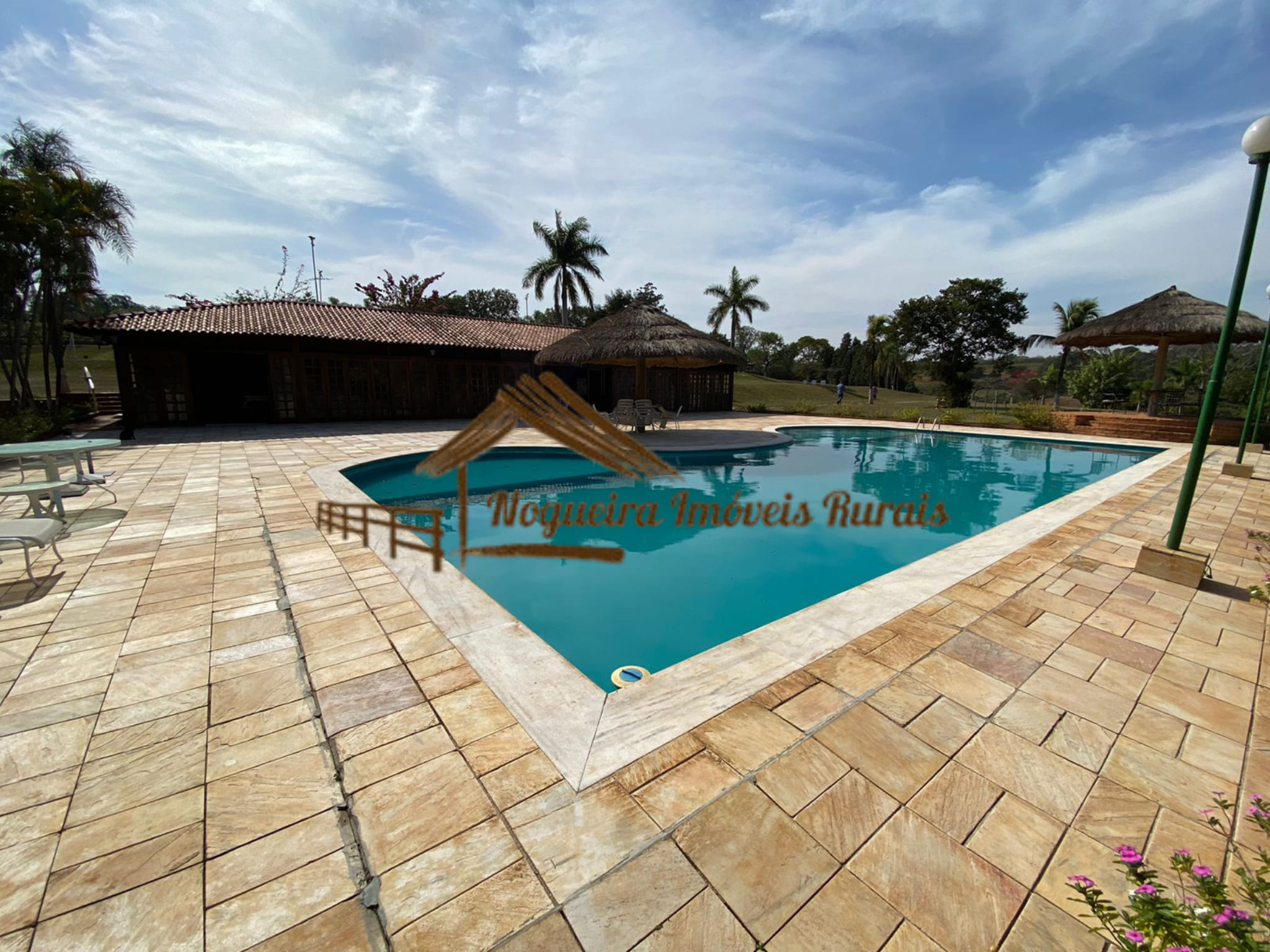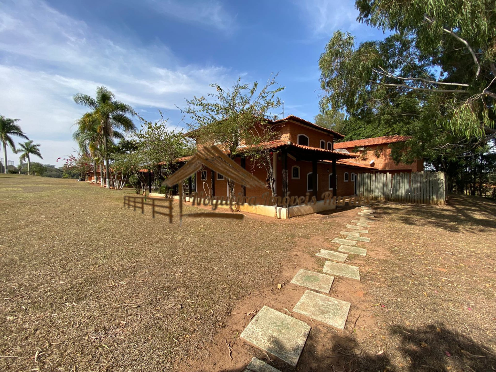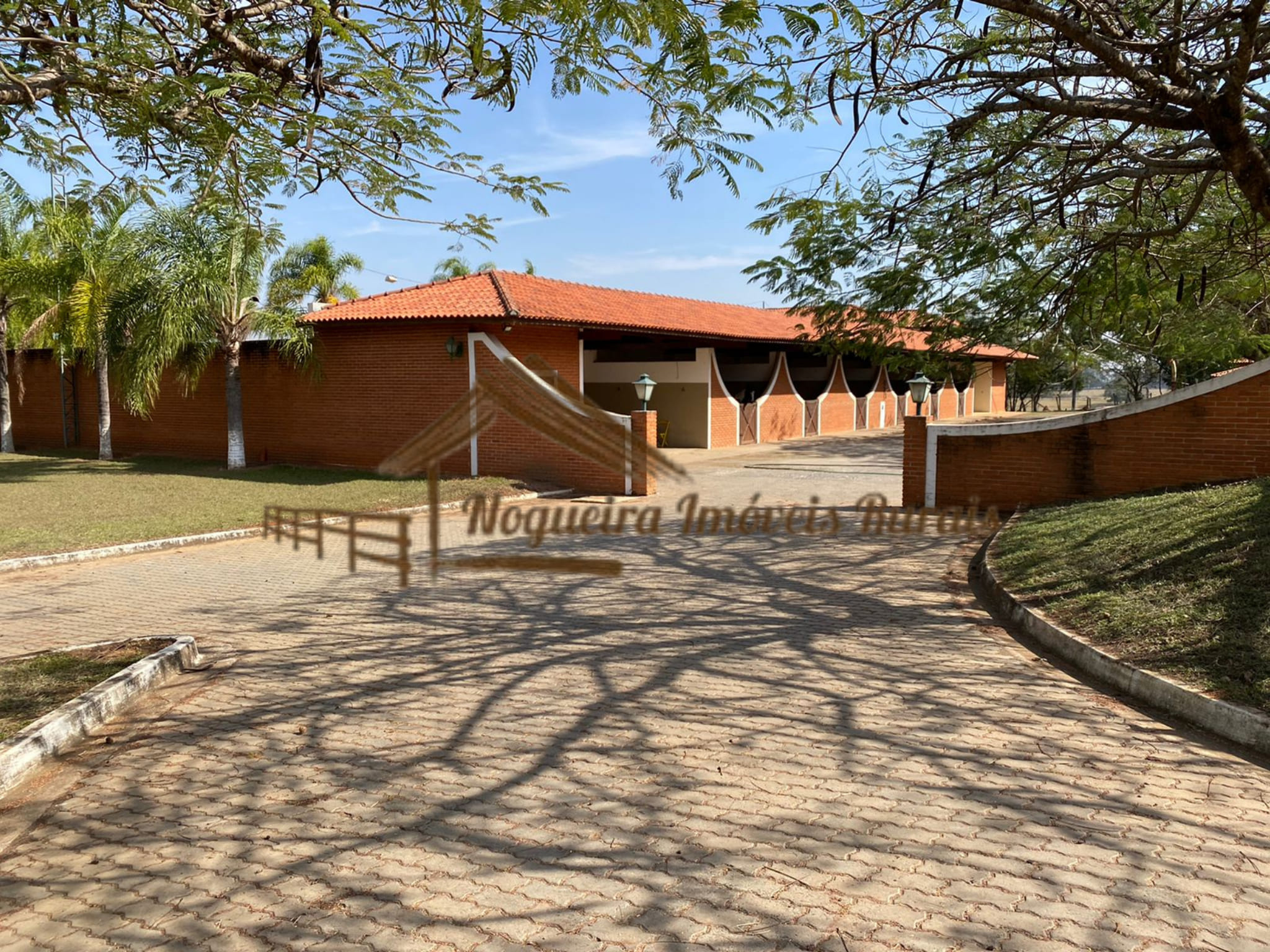 O imóvel rural possui casa sede, baias para cavalos, barracão, curral, casas para funcionários e quadra de tênis.