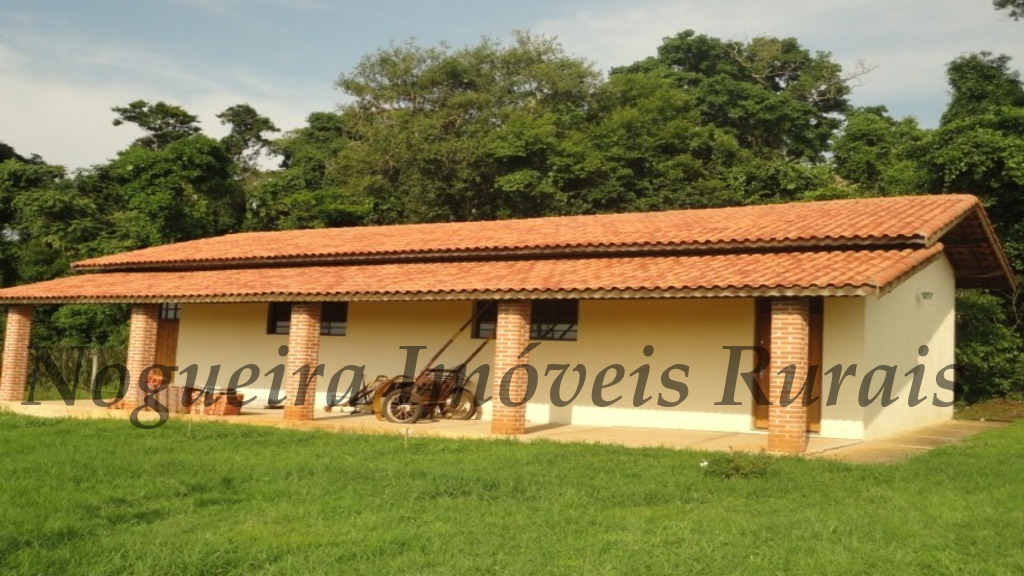 Casa sede com varanda, 2 quartos, sala, cozinha, 2 banheiros, piscina, casa para funcionário, curral e poço artesiano.