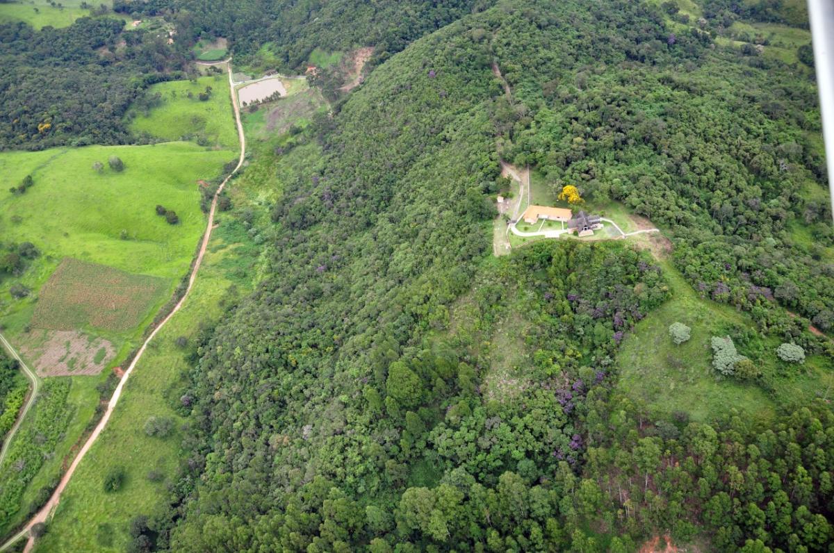 Sítio de 8 alqueires paulista com pasto, mata e pomar. Sede com 3 dormitórios (sendo 1 suíte), sala com lareira, lavabo, banheiro social, copa, cozinha, lavanderia, varanda e garagem. Casa de hóspedes com 1 dormitório, área gourmet com churrasqueira, fogão e forno à lenha, e sauna. Lago, terreno ondulado, e localizado em Guaratinguetá, SP