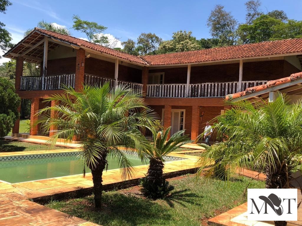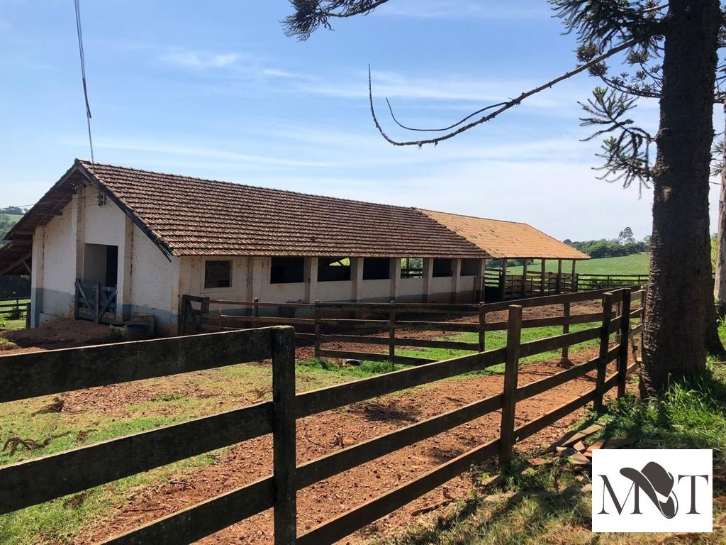 Propriedade rural com casa principal de 4 dormitórios, piscina, casa para caseiro, curral completo, área de confinamento e galpão.