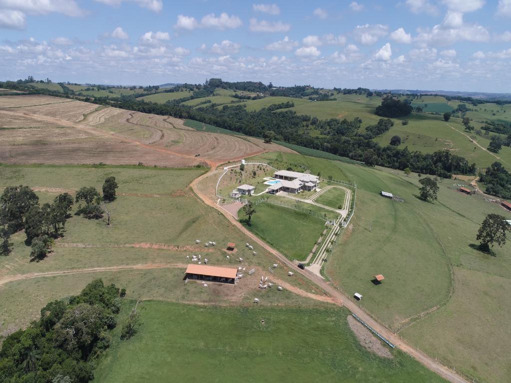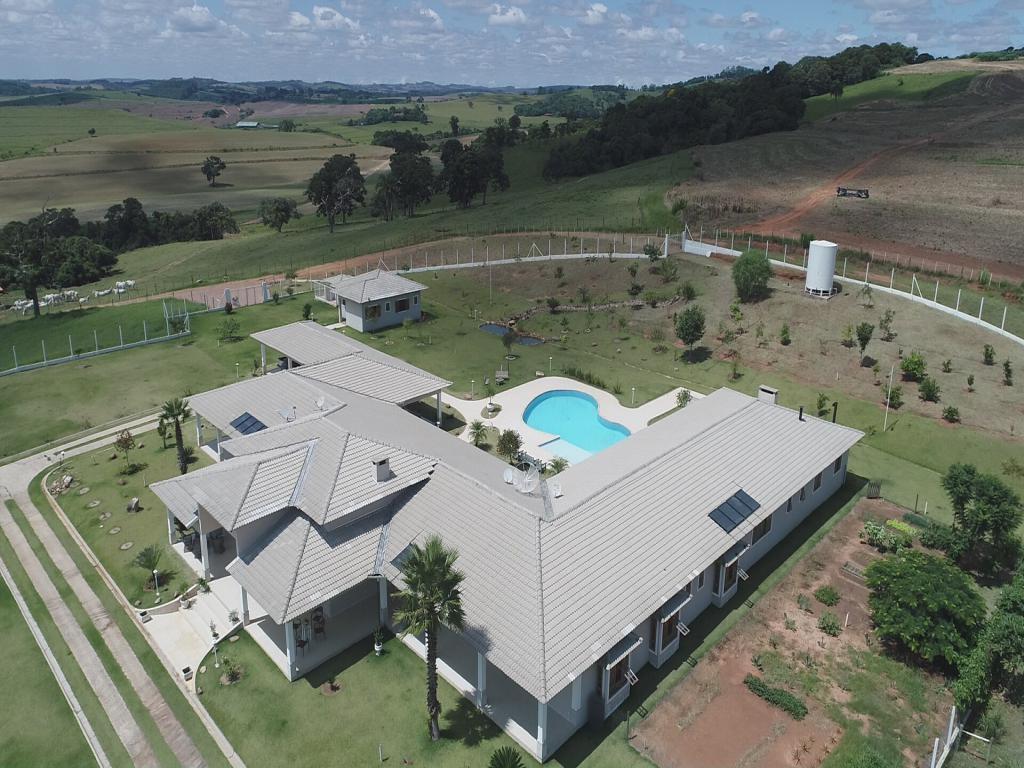 Propriedade rural à venda com casa sede recém-construída de 1.200 metros quadrados, incluindo salão de festas e jogos, piscina, casa de hóspedes, três casas para caseiros, escritório, laboratório, dois galpões para ovinos, um estábulo, galpão para máquinas e implementos, trincheira de silagem e curral.