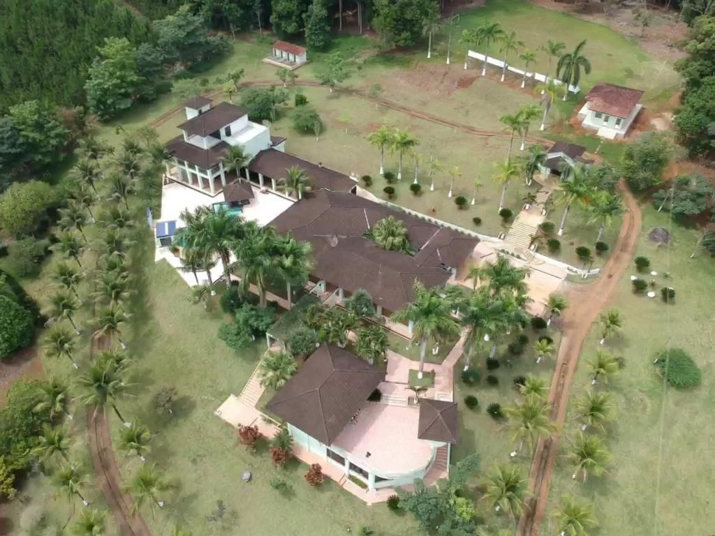 A propriedade conta com uma casa sede de 3 mil metros quadrados, composta por escritório com banheiro, adega, sala de estar, sala de jantar, cozinha, 2 banheiros sociais, sete quartos, sendo 4 suítes, closet, salão de festas em granito, lavanderia, sauna e banheiros.