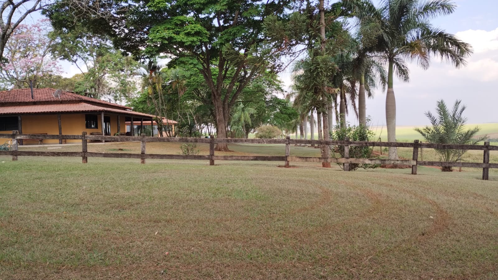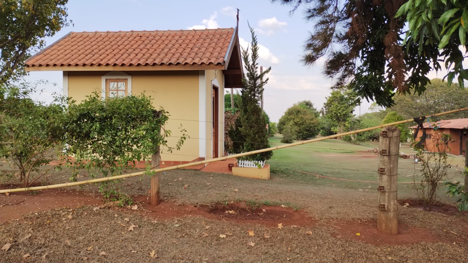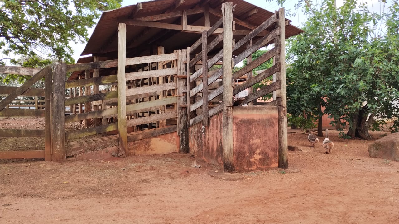 Casa sede, casa de funcionário, barracão e curral de manejo.