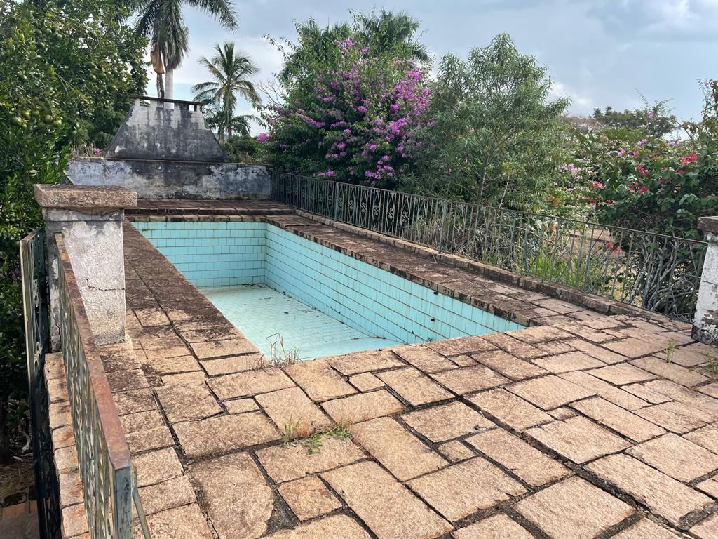 A propriedade inclui uma casa sede antiga com piscina que necessita de reparos, além de tulha, terreirão e galpões.
