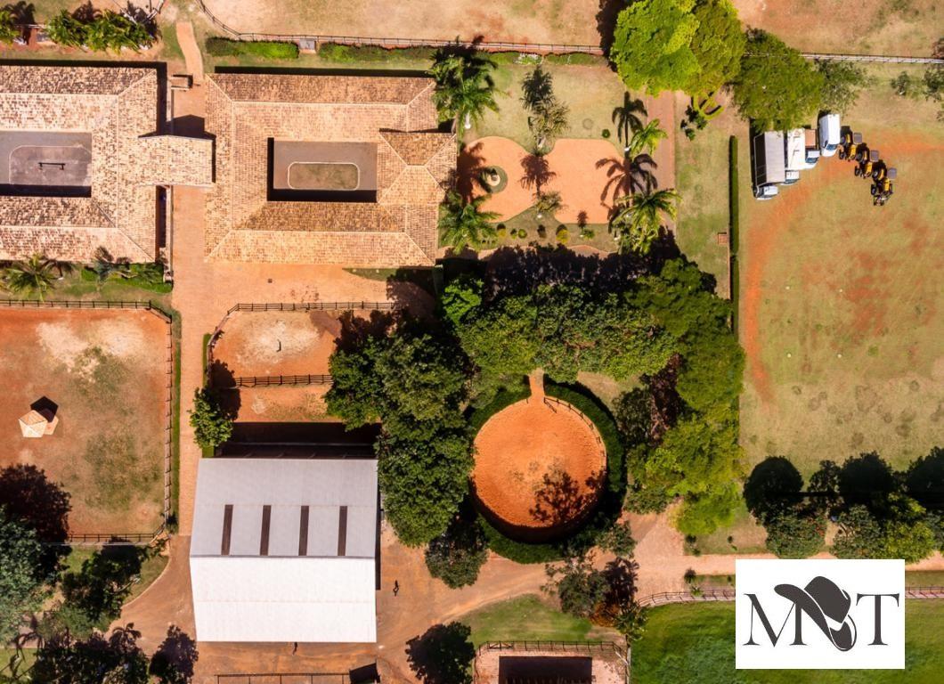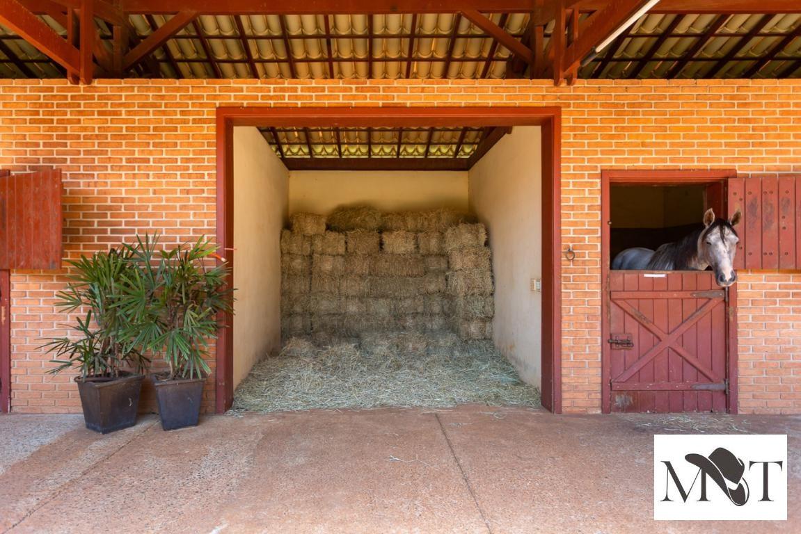 A propriedade possui uma casa sede, um salão de festas e jogos, três casas para funcionários, um galpão completo para máquinas, um galpão com um grupo de 34 baias, redondel, piquetes, entre outros itens.